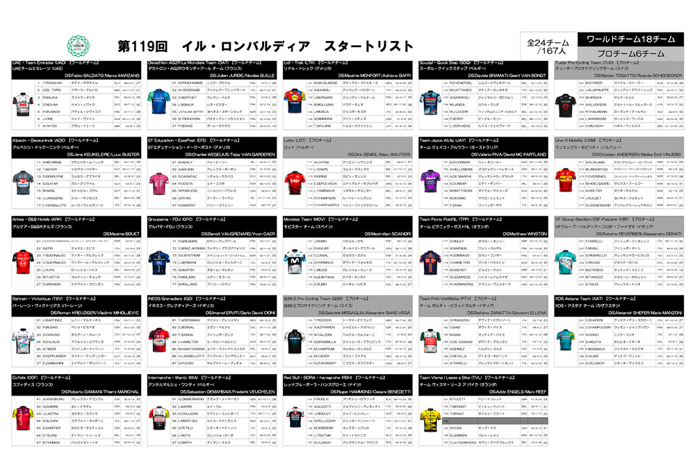 Cycle*2025 イル・ロンバルディアのスタートリストを掲載しました。