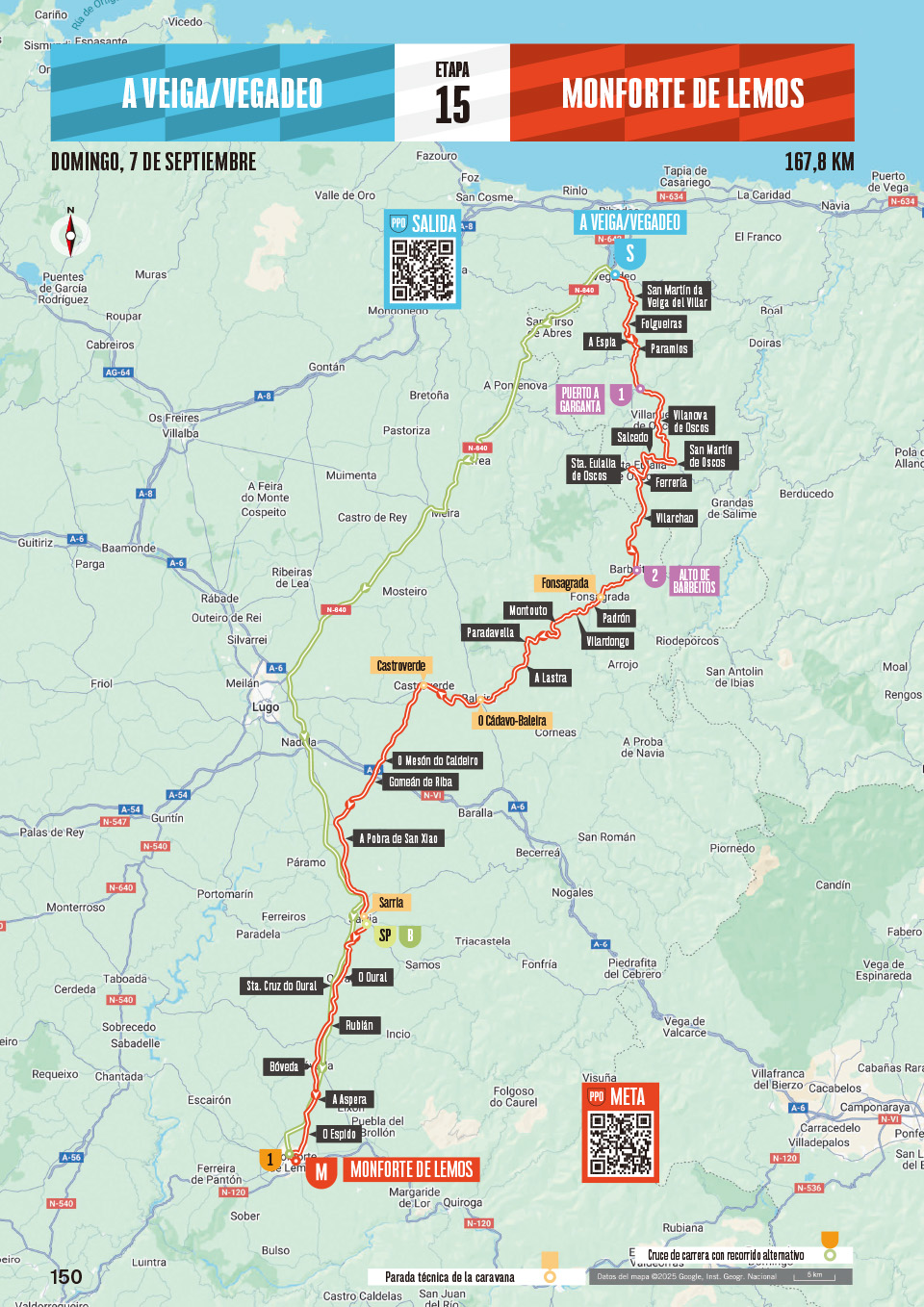 スタートから100kmほど走り、「カミーノ・プリマティヴォ(最初の道)」を少々拝借した後に、ようやくコースは下り基調に転じる。道路も比較的まっすぐになり、隊列を組んでのコントロールを容易にするだろう。中間ポイントのサリアは、「最短5日」という巡礼路の出発点であり、緑ジャージへの通過点となるかもしれない。