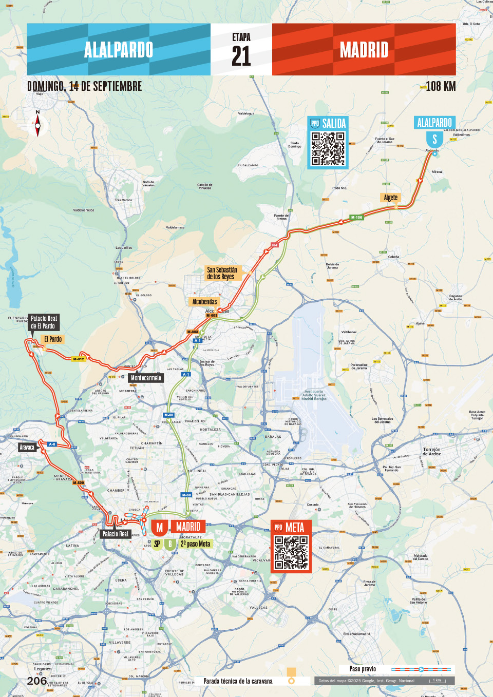 111.6kmの短いフィナーレは、マドリード北郊外のアラルパルドから出発する。もはや立ち向かうべき山岳は存在しない。しばらくは和やかな雰囲気の中で、記念撮影や乾杯を楽しめるだろう。ちなみに1年前は、20年ぶりにマドリードを舞台とした個人タイムトライアルが争われ、いわゆる最終日恒例の「パレード走行」は存在しなかった。今年はステージ半ばでマドリード最終周回に滑り込むまでは、おそらくレースらしい動きは見られないはずだ。