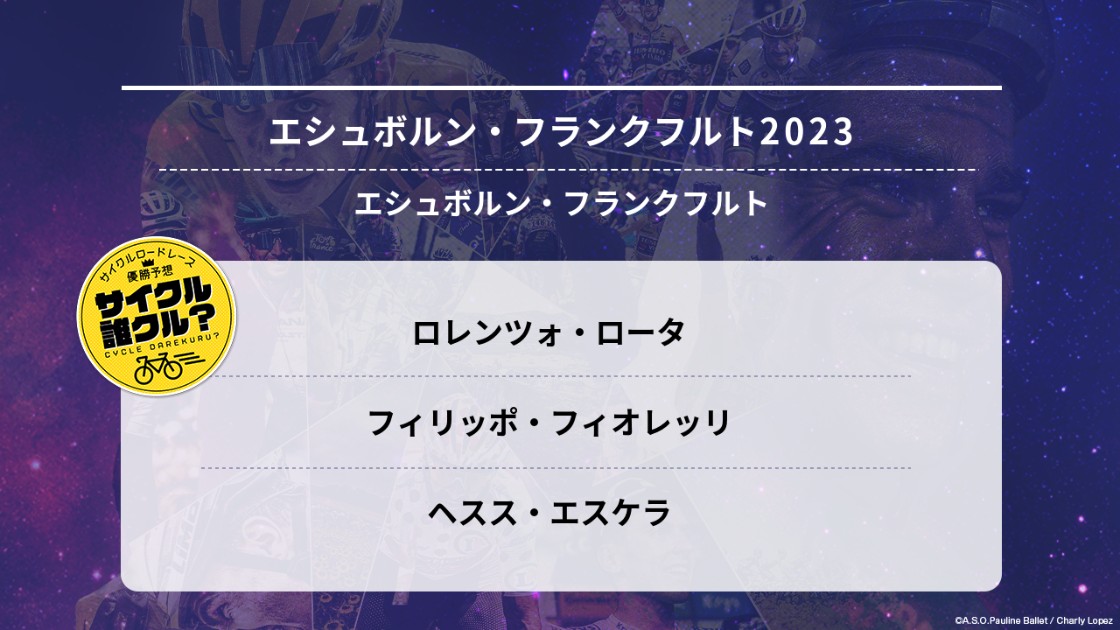 エシュボルンは予想がむずかしかったですね。当初の予想順位は全部変えたけど、全然当たらなかったです。最近は自転車の性能がかなり良くなったので、今までと違って高速走行が続いても、最後まで足が持つ選手が多くなったのかな?ディスクになってブレーキコントロールもやりやすくなって、走り方が変わって来ているような気がします。予想はますますむずかしくなりそうです。