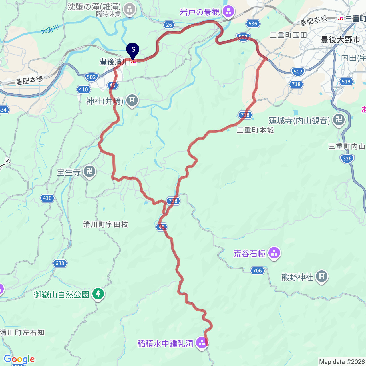 竹田駅からやまなみハイウェイまで1000アップ