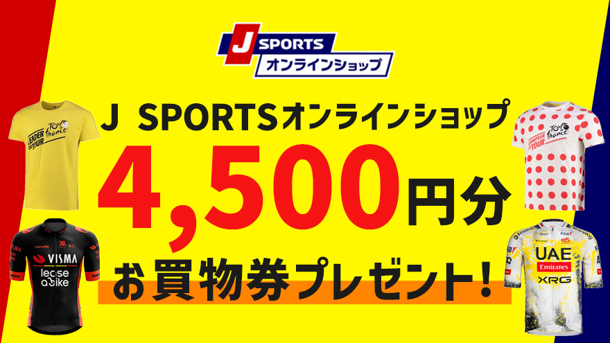 ・お買物券は、2026年6月2日(火)時点でJ SPORTSオンデマンドのサイクルロードレース年間パックをご契約中の方にプレゼントとされます。対象者には順次、J SPORTSオンデマンドにご登録いただいているメールアドレス宛にデジタルクーポンをお送りします。