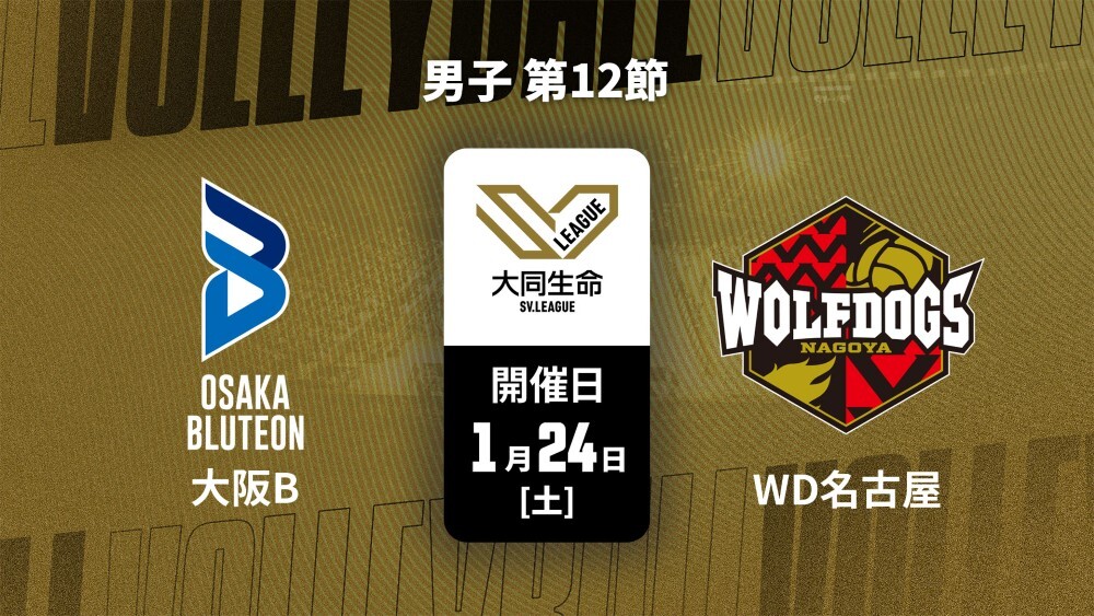 【限定】大同生命SVリーグ 2025-26 男子 第12節 大阪ブルテオン vs. ウルフドッグス名古屋(1/24)