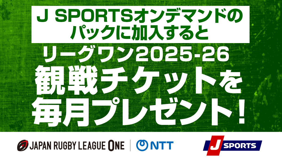 J SPORTSオンデマンドのパックに加入すると、毎月抽選でリーグワン2025-26の観戦チケットが当たる!
