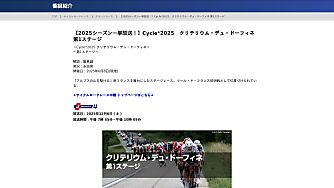 クリテリウム・デュ・ドーフィネ 開催日:2025年6月8日(日)〜15日(日) オンデマンド配信情報 放送情報 出場予定注目選手 レースの見どころ ルートガイド レース…