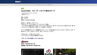 <Cycle*2026 ジロ・デ・イタリア> 〜第20ステージ〜 リモート解説:飯島誠 実況:サッシャ 開催日:2026年5月30日(現地) 最も美しく、最も厳しいグランツール。 …