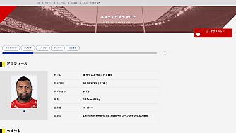 ネタニ・ヴァカヤリア Netani Vakayalia サブメニュー リーグワン TOP リーグワンとは チーム紹介 注目選手 順位表 リアルタイムスタッツ/試合結果 チームスタッツ…