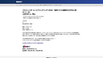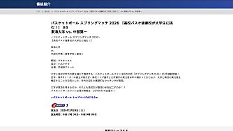 無料 第2試合(03/13) 【高校バスケ強豪校が大学生に挑む!】 バスケットボール スプリングマッチ 2026【限定】