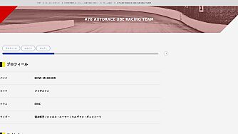 #76 AUTORACE UBE RACING TEAM プロフィール バイクBMW M1000RR タイヤブリヂストン クラスEWC ライダー浦本修充/ハンネス・スーマー/シルヴァン・ギュントーリ …