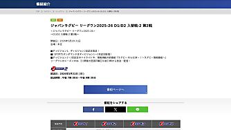 <ジャパンラグビー リーグワン2025-26> 〜D2/D3 入替戦-1 第1戦〜 開催日:2026年5月23-24日 会場:未定 ■ディビジョン1、ディビジョン2全試合放送! ■J SPORTS…