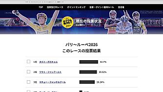 TOP 投票受付中レース ポイントランキング 投票・ポイント獲得ルール 意見箱 現在の投票状況 #jspo誰クル サイクルビレッジへ戻る パリ~ルーベ2026このレースの投…