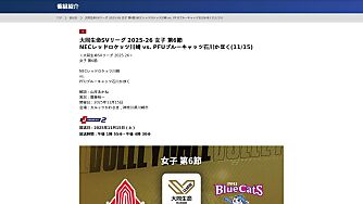 ヌットサラ・トムコム サブメニュー TOP 大同生命SVリーグとは Free Live Game! チーム紹介 選手名鑑 配信予定 試合結果 チームスタッツ ランキング 選手スタッツ …