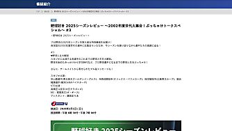 <野球好き 2025シーズンレビュー> プロ野球の2025年シーズンを振り返る特別番組をお届け! 各球団の2002年度世代の選手にお集まりいただき、今シーズンを振り返り…
