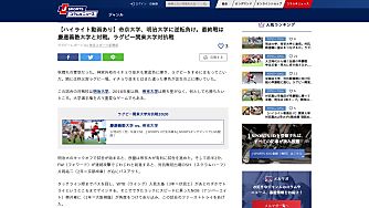 キーワード:大学ラグビー 帝京大学 早稲田大学