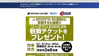 2026年2月04日 リーグワンDIVISION 1の第11節~第13節(3/14(土)~3/29(日))までの、お好きな試合の観戦チケットを抽選でプレゼントする「ジャパンラグビー リーグ…